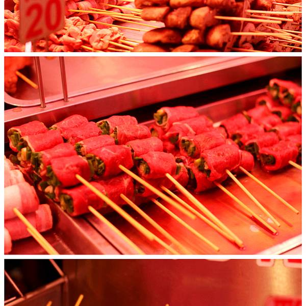 第一家最畅销的有:肉串、鸡皮、鸡屁股、甜不辣以及鱿鱼。