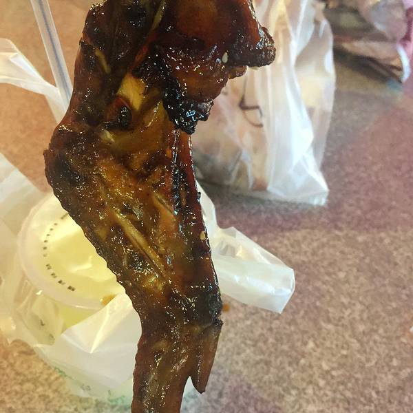 要等一个小时的烤肉,游客和当地人各一半,生意超级好。【概述】要等一个小时才有的烤肉,处于好奇,排长队、等超久也在所不惜要试试!当地包车司机推荐这家烤肉,到自强夜市首先要去下单,因为要等一个小时才有得吃。味道可能不是所有人都喜欢,北方人吃惯孜然的咸的烧烤,不过我们广东这边自己去烧烤都是图蜂蜜做甜烧烤的,第一家烤肉串就是偏甜味的烧烤,所以我很适应这个味道,喜欢吃甜烧烤的同学可以来尝尝。【地理位置和交通】花莲县吉安乡自强路与和平路交叉口的自强夜市中,花莲的公共交通不方便,很少公共汽车,建议打出租车或者骑电动车前往,如果让民宿老板帮忙叫车,比打表便宜,大概8.5折。【环境】自强夜市里小吃都是都是大排档,不要追求什么装修和好环境了。这家店只有烧烤区域,客人都没有座位,烧烤拿到都是要外带吃的。【菜品和口味】个人比较少吃烧烤,在国内吃了一般都拉肚子,吃完这家烧烤不会,事实证明真东西新鲜。6个人一起吃的,所以几乎把店里所有食物都吃了一遍,推荐:烤鸡翅,肥而不腻,味道比一般的烧烤是好吃一点,大概是酱汁的功劳。牛肉卷和猪肉卷中间很大把葱,喜欢吃葱的这个一定要试试,烧得很香脆。【价格】超高性价比,烧烤的品种还不少,价格还行,不算贵。很多烧烤,现场都有明码实价,举例子几个吧:鸡翅很大一只,30台币,等于6元人民币。鸡腿60台币,等于10元人民币。鱿鱼很大一只,100台币,等于20元人民币。素菜更便宜,猪血糕、豆腐等都是10几台币一串。【服务】服务就没有了,小店生意很爆,我们因为在包车司机指导下,一进也是就先去下单,因为是雨天,所以当天我们去的时候人还不算太多,排队点了单然后交钱拿牌,就去自强夜市尝尝其他店的美食,回来的时候还不到一小时,就拿到了烧烤。