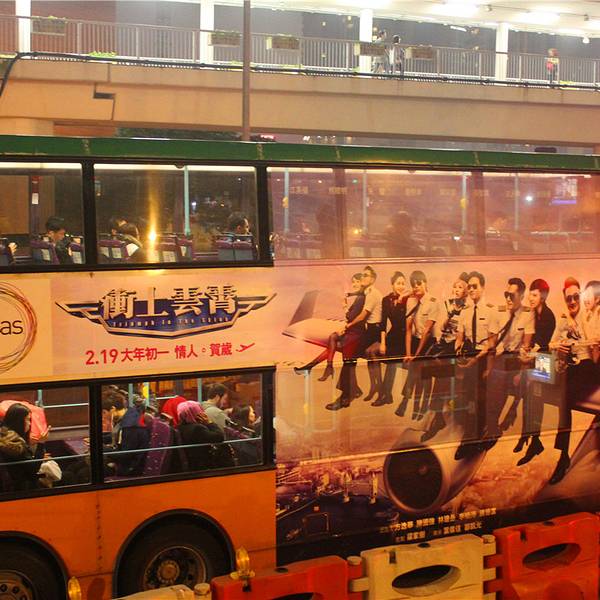 晚上Big Bus Tours夜游,很久之前就想试试,看了很多攻略心动不已,在尖沙咀半岛酒店办公楼对外,找到工作人员,换票之后就可以出发啦~