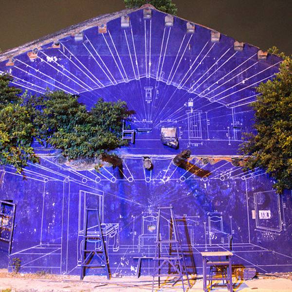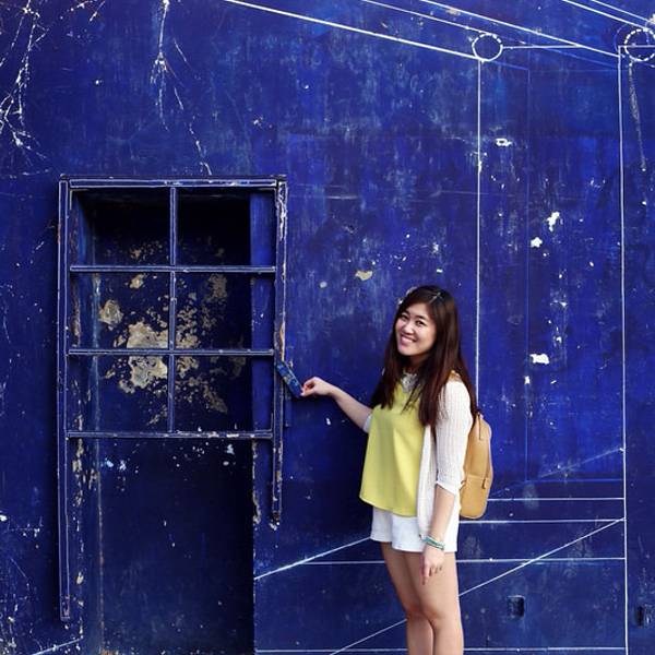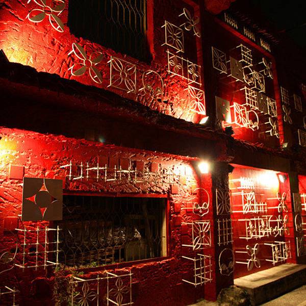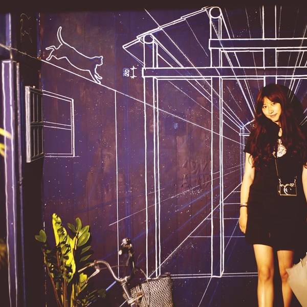是一款景物墙,但是非常具有文艺色彩,适合拍照,因此很受年轻人的喜爱。分为两层,上层用色彩勾画出了一些虚景,与真正的房间相互映衬;下面则是一家酒吧,布置很有情调,不过只在晚上的时候营业(一般都是九点才开始,所以不用去的太早)。