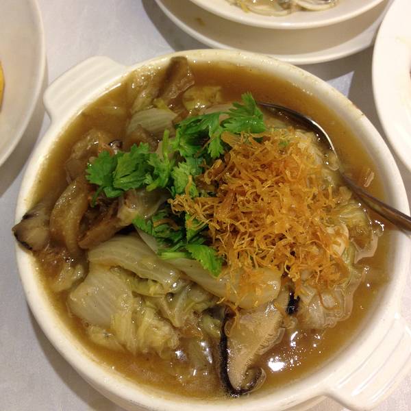 那个蛋包萝卜不错,卤肉也非常酥烂入味,蚬有点腥,还点了个干贝白菜煲,味道一般般