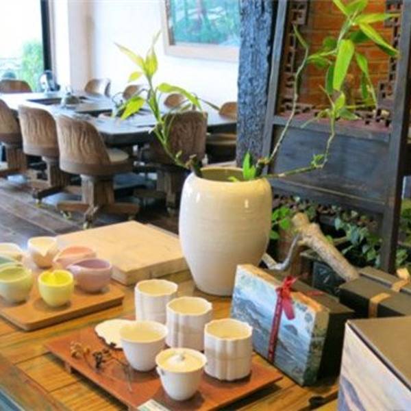 水心月茶坊坐落于山崖边,落地式的窗户仿佛让你置身于天空之中,因此也称作“天空之城”。茶坊的外观是在九份难得一见的红砖建筑,原是艺术家洪志胜的私人创作空间,后来开放为茶、陶、书画生活美学馆,内部陈设强化了艺术元素,到处充斥着艺术的氛围。这里拥有欣赏山城的绝佳视野,在这泡上一壶香茶,望山看海,体验五感生活美学,享受远离嘈杂都市的悠闲时光。