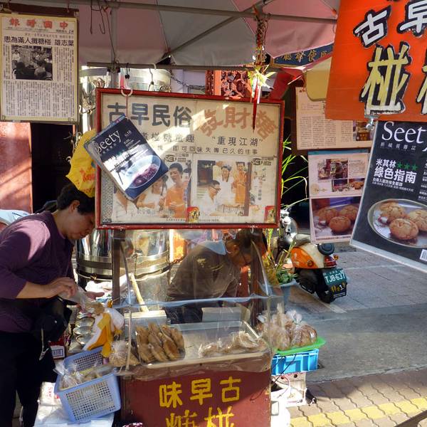 台南市永福路二段 武庙小吃街的小摊古早民俗发财糖,很像麦芽糖的感觉,30nt一个。