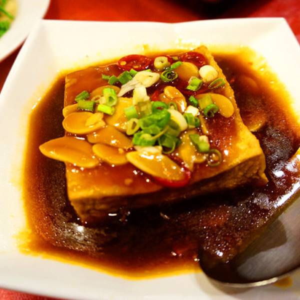 红烧豆腐很进味,老豆腐裹上酱料,入口口感很赞。有机蔬菜炒是蒜炒的,清香,山上的主打有机应该是真的吧