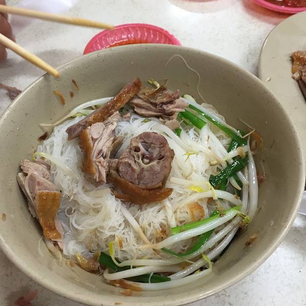 这个也是司机大哥的推荐,两个店很近,招牌很大。我吃的鸭肉米粉,跟我第一天吃的花枝羹的米粉一样细。。。。。。。好吃,才45台币