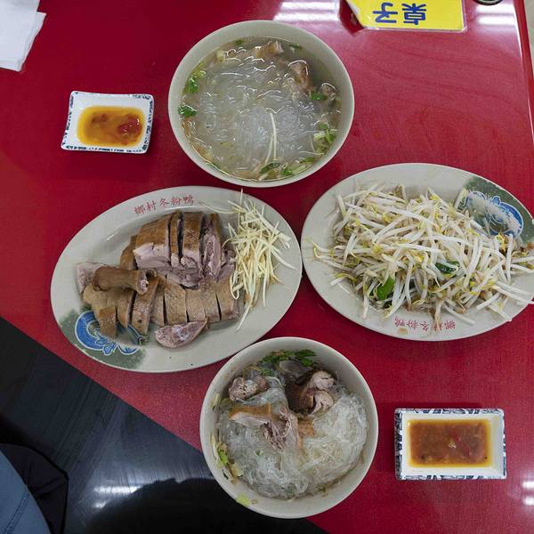 从早上9点出发到下午5点多 我们终于到了恒春啦 真的开车人辛苦 坐车人也辛苦啊 去民宿放好行李 稍作休息我们就去司导推荐的乡村冬粉鸭吃晚饭 我们磨磨蹭蹭的速度慢了点 王司导在边上一直催我们 原本我还在想吃米粉的点怎么会人多呢 事实证明真的人好多啊 我们过去第二桌 10几分钟后差不多全部人满 我就觉得想必他们家的东东很好吃吧 我们点了不同的东东 有米粉有面有冬粉还加了些卤味 他们家的卤味和在花莲吃的卤味比起来真的好吃好多好多好多好多!!!真的5星推荐哦 他们家卤味里面有股淡淡的烟熏味 咸淡也适宜 超级喜欢