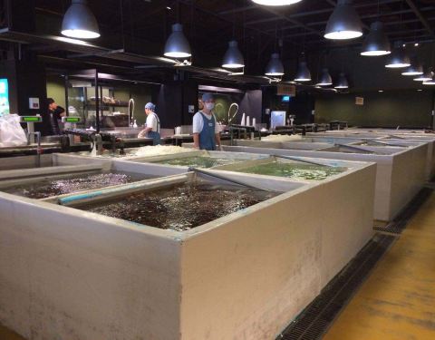 来到台北几天,一路都在吃,但胃还是得不到最大限度的满足。不甘于夜市的领导又搜罗出来一家吃海鲜的店——上引水产,据说是台湾版的筑地市场。勤俭持家的领导带着我转了两趟公交车才到这个海鲜市场,规模比我想...来到台北几天,一路都在吃,但胃还是得不到最大限度的满足。不甘于夜市的领导又搜罗出来一家吃海鲜的店——上引水产,据说是台湾版的筑地市场。勤俭持家的领导带着我转了两趟公交车才到这个海鲜市场,规模比我想象的要大一些,吃海鲜的方式也比较新颖(大概我没有见过世面)。这里根据海鲜的吃法分了三个区,有立吞区,炭烤区,蒸煮区,刚开始没搞明白,以为找到一个位置坐着就好,后来才明白原来点菜前你要先想清楚吃海鲜的方式。