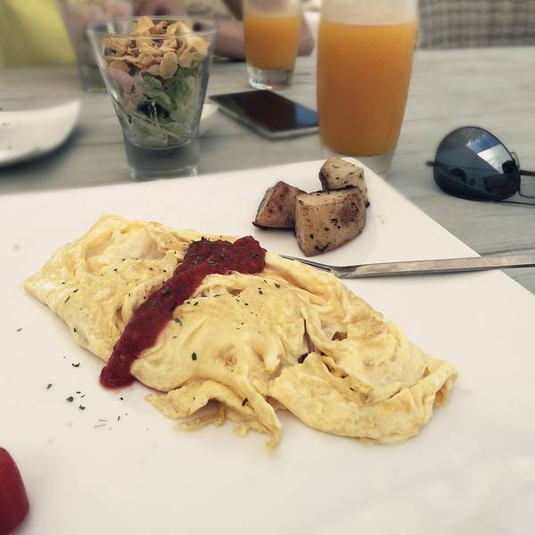我们住三晚,正好吃个遍。回来吃早餐。色拉的酱很棒,酸酸甜甜的。加了罗勒叶的烤面包也不错