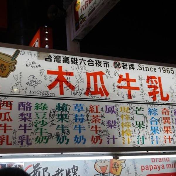 这里就是热闹的六合夜市了,啥都不说了,开逛吧!首先推荐,老郑木瓜牛奶!50新台币(10rmb)的价格还有什么好说的呢?招牌上都是各种名人签名。食客大排长龙,位置也很好认,刚进夜市的前几家,大排长龙的就是啦...