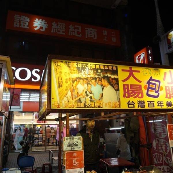 这里就是热闹的六合夜市了,啥都不说了,开逛吧!首先推荐,老郑木瓜牛奶!50新台币(10rmb)的价格还有什么好说的呢?招牌上都是各种名人签名。食客大排长龙,位置也很好认,刚进夜市的前几家,大排长龙的就是啦!还有这家,骰子牛肉。虽然后面还在几家夜市遇到,但还是觉得这家的比较好吃。不知道是不是因为小哥比较帅···而且还有什么肉类检疫证书什么的,证明是安哥拉牛肉。吃的放心吧!这家大肠包小肠,貌似在六合夜市有很多连锁店。夜市以马英九为招牌,不过我觉得都差不多啦。大肠包小肠还真是每家夜市都有的。这家人很多,很好吃。要是去不了台南,可以在这里吃上碗面。类似海鲜面啦!六合夜市海鲜烤虾特别多,后来去别的城市就没有这么成规模的海鲜夜市了。也算是六合夜市的特色了。特别是烤虾,真是高雄夜市特色!神奇的食物,不敢尝试,哈哈。口味还挺多的,喜欢搞笑的人,可以买来尝尝看!完美结束一天行程。
