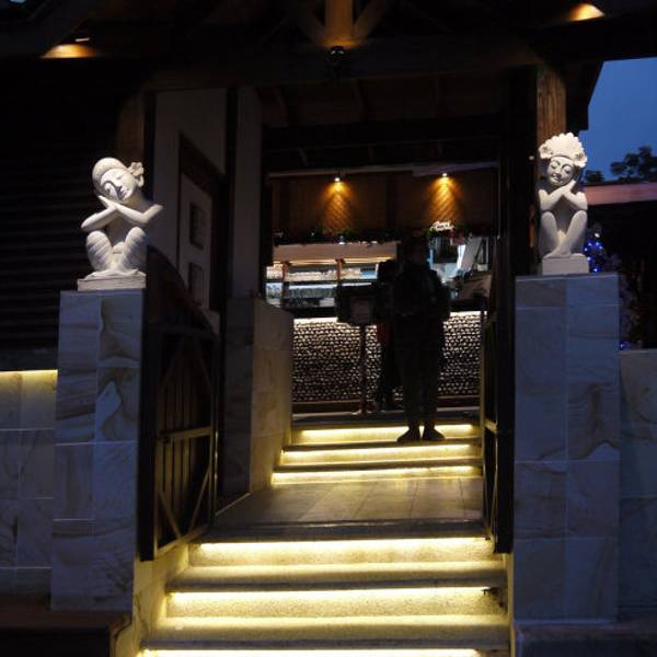 走累了,在淡水湾边找到“榕堤”这是一家非常有情调的餐馆。驻场歌手悠扬的歌声~昏黄的灯光~美味的食物~东南亚的装修风格~热情周到的服务生~可以直面淡水河的大片大片的落地玻璃~一切都显得那么美好~