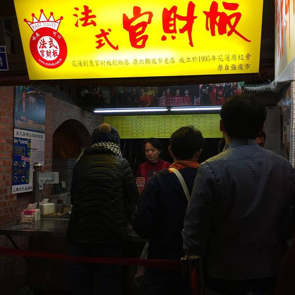 5、法式棺材板。棺材板是台南名小吃,到了花莲被发扬光大出来各种创意吃法。何谓棺材板?实为各种口味的炸吐司。因为太过有名,队伍太长,实在无时间去等待所以放弃了。 另外,自强夜市还有大肠包小肠,蚵仔煎,...