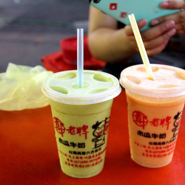 六合夜市一定要推荐的 郑老牌木瓜牛奶 高雄让我念念不忘的就是它了。木瓜牛奶超级赞!超级嗲! 50块钱一杯 折下来人民币10块钱左右 有看到陈建斌和老板娘的合照。 第一次去买了木瓜牛奶 第二次本来想买芒果牛奶的 老板娘说没有单纯的芒果汁好喝 然后听到后面人叫酪梨牛奶 于是瞬间改变主意换了酪梨牛奶 木瓜牛奶口感超赞 10块钱的价格也很便宜 是台湾期间喝到的最好喝的木瓜牛奶啦。 酪梨牛奶和芒果牛奶也不错喝,真的有芒果和酪梨在里面