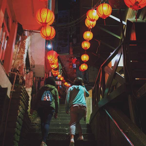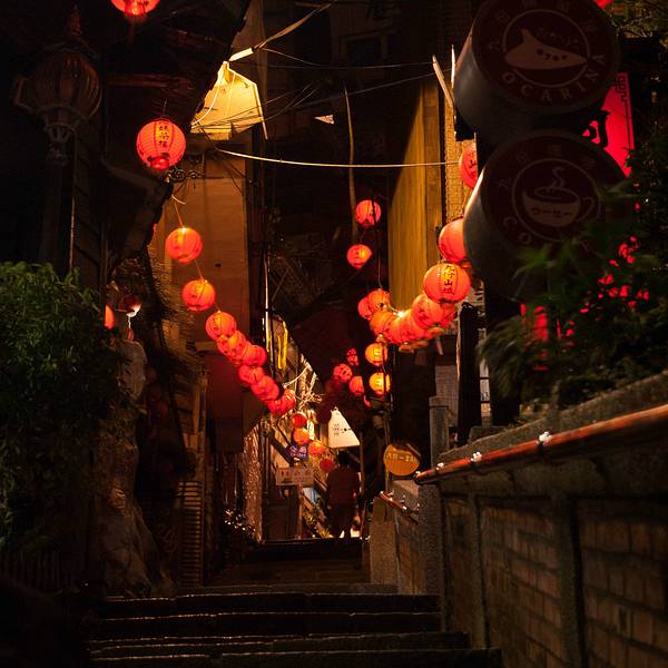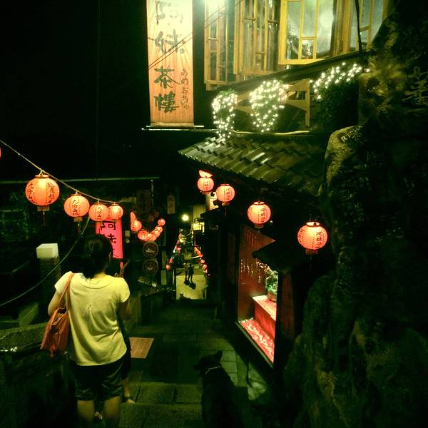 ▼ 晚上从十分回来,在民宿用过餐后,打算逛一逛九份老街。因走过去有一段距离,得知我们欲前往,好心的民宿老板便亲自驾车给我们当接送司机。到台湾旅行,许许多多的台湾人民都会递给你如民宿老板般不经意间的感动。怀揣着这份情义,我们潜入九份的夜色,流连于高挂的大红灯笼间