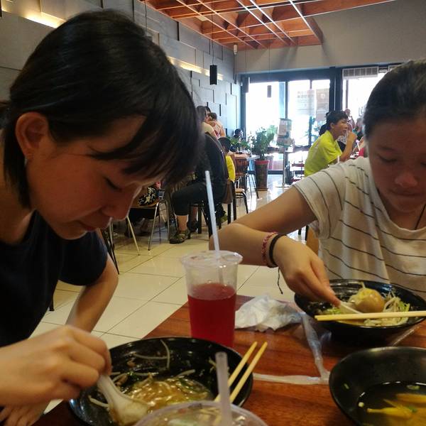 因为今天本打算骑90多公里到玉里,由于大家太累了,玉里也没什么好玩的,大家决定晚上坐台铁到玉里,休息一天不骑车。 睡了懒觉,起床去到台东一家很有名的餐厅|老东台|吃本台目,一种台湾特色打米粉。用勺子吃,舀一勺汤和米粉,加一点黑醋和卤蛋,一口吃下去,超级美味。