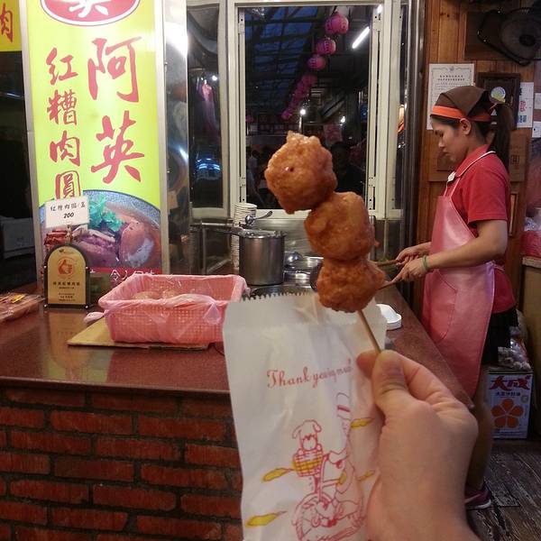 来到阿英红糟肉丸的店门口,眼睛接收到最多的讯息是:“粉红色!”一边是ㄧ颗颗刚蒸出来的肉丸,一边是半成…