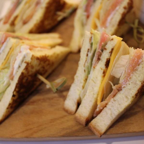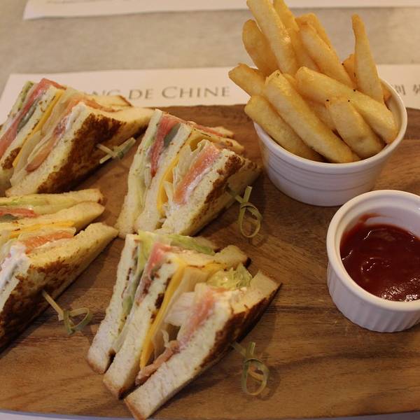 所以我们点了饮料和点心 黑糖拿铁真的很特别,上面那一层黑糖颗粒真的以前没有吃过 三明治也是量大...