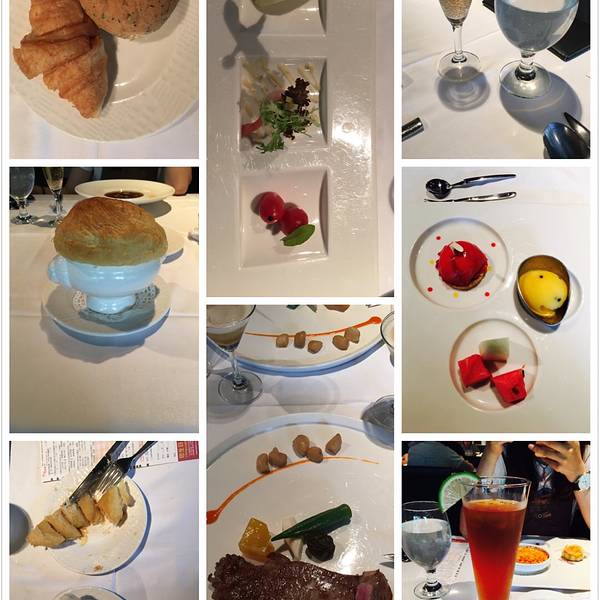 牛排 餐包 海鲜汤 牛小排 鹅肝酱 鸡尾酒 法式烤布蕾 水果盘 台塑牛排 红酒烩牛膝 松露海鲜浓汤 芒果金字塔 龙虾 猪大排 燻鲑鱼萝美鲜虾