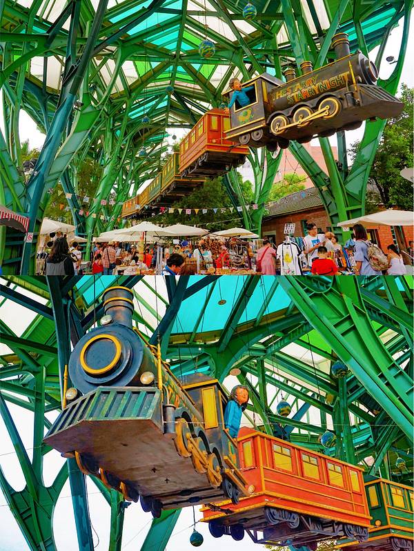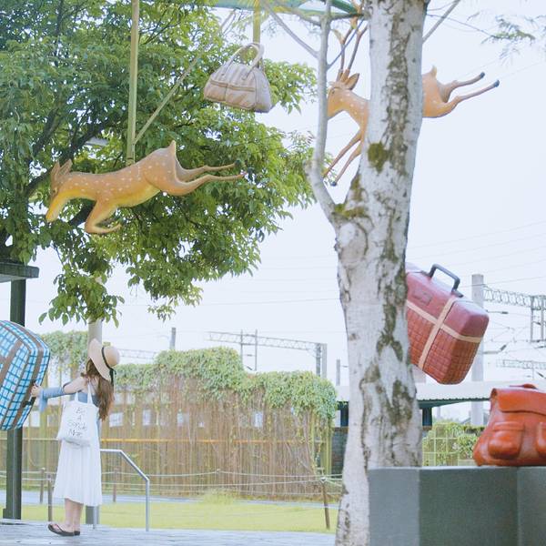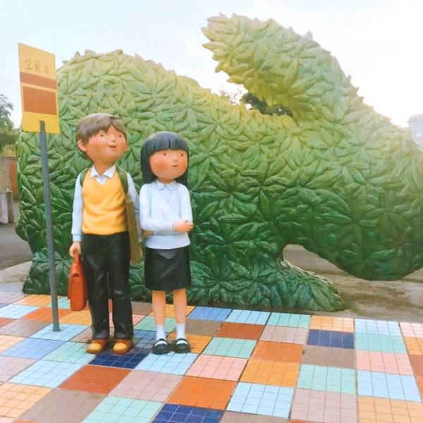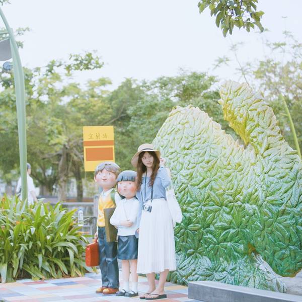 ▫️几米公园就在宜兰火车站的旁边,公园里很多几米手绘本的经典絮语,也有很多由几米经典场景造出来的场景:《向左走先生,向右走小姐》《星空-飞天公车》《地下铁一行李箱》等等