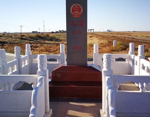 ③二连国门拥有中国边境唯一的双号双立界碑。因为二连所在的地方正好是国界线转弯的地方,为了明确边界走向,所以设立了四块界碑;