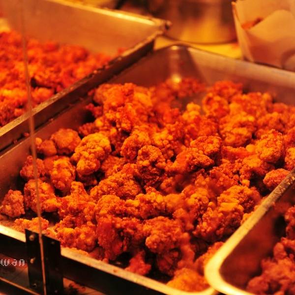 买了油炸香菇,60NT$一份,这个真的超级无敌好吃,很多夜市都有卖,强烈推荐!这个唱的就一般了