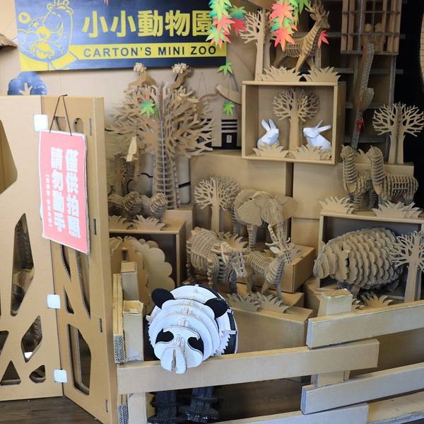 ...时,商店已经开门,里面全是瓦楞纸的各种工艺品,琳琅满目,非常有意思,让我不得不感叹台湾人的创意当我们从小瑞士花园返回到这里时,商店已经开门,里面全是瓦楞纸的各种工艺品,琳琅满目,非常有意思,让我不得不感叹台湾人的创意。。