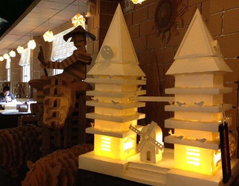 晚上去纸箱王参观,是个可以吃饭,买纪念品的地方,有意思的是,这里一切都是纸做的晚上去纸箱王参观,是个可以吃饭,买纪念品的地方,有意思的是,这里一切都是纸做的。一楼是手工艺品店,二楼是餐厅,套餐都在70人民币以上,我觉得味道一般。。