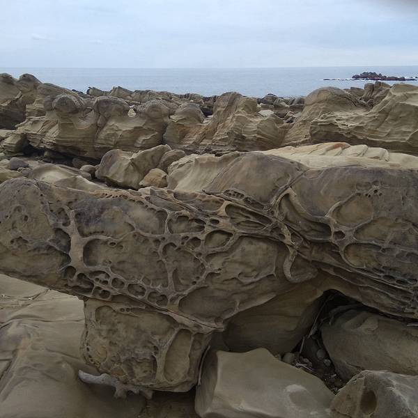 这岩石被海水“美化”后,变成了好独特的——蜂窝岩。还有表面光滑的“豆腐岩”,除了这些,还有很多叫不出像什么的岩石种类呢。小野柳游客服务中心里面有介绍景区里面的岩石种类,长见识了! 展开