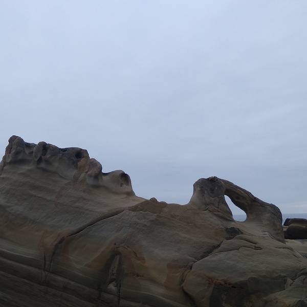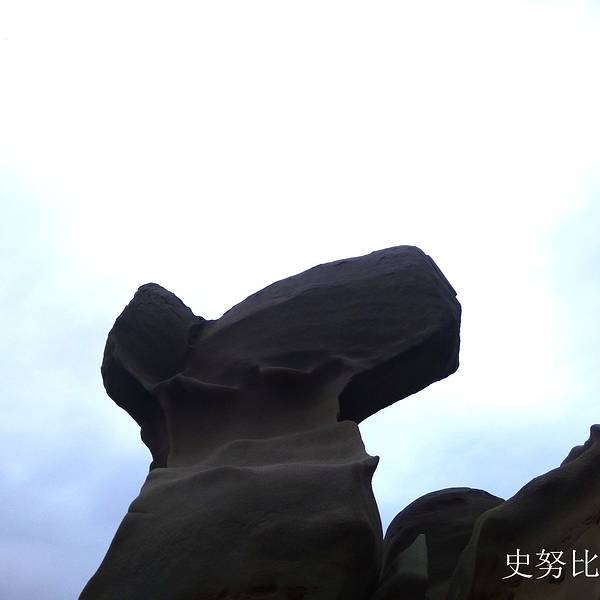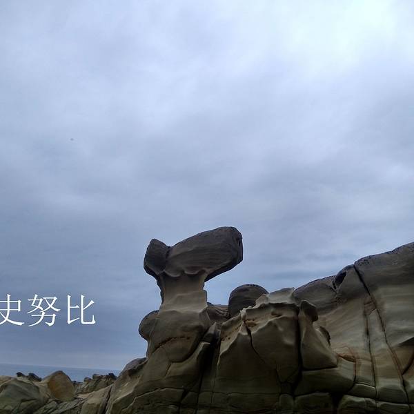 抵達小野柳時有幾班觀光巴士在哪裡,所以人還算蠻多的,不過20分鐘以後遊客已經陸續離開。今天是陰天,這種天氣拍照雖然比較不好看,可是氣候非常舒適。名為小野柳,當然可以見到一些造型奇特的石頭造型。這塊石頭最特別,這個角度看像史努比,換個角度就像女王頭了! 展开