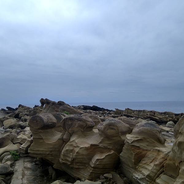 抵達小野柳時有幾班觀光巴士在哪裡,所以人還算蠻多的,不過20分鐘以後遊客已經陸續離開。今天是陰天,這種天氣拍照...我們準備去小野柳風景區走一走,然後走路去加路蘭休息區,再走回來搭12點左右的車回台東市區。