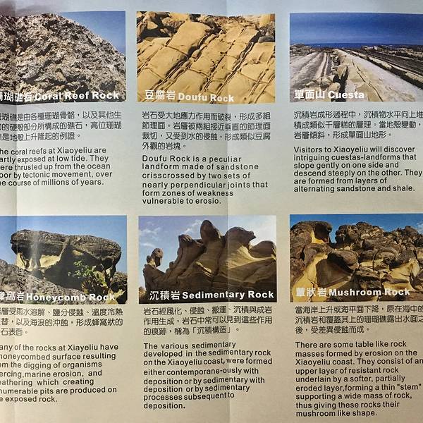 实用 当时当你沿着海边一直走的时候,一开始你会听到一阵阵的海浪声,而且海浪声越来越震撼,越来越明显台湾最大的天然岩石博物馆!小野柳地形景观区位于台湾的东部沿海岸线部分,属于台东地区,从台东市区有台湾好行的东部海岸线巴士能到达那里,如果只是去小野柳地形景观区,建议买单程票,去的时候买一次,回来的...台湾最大的天然岩石博物馆!小野柳地形景观区位于台湾的东部沿海岸线部分,属于台东地区,从台东市区有台湾好行的东部海岸线巴士能到达那里,如果只是去小野柳地形景观区,建议买单程票,去的时候买一次,回来的时候买一次,公交站会直达景区的门口,而巴士有具体的时候,可以参考公交站牌的时间,基本都很准,最多相差2-3分钟。小野柳地形景观区是免费参观的,但是里面有游客中心,提供最基本的服务,里面有景区的一些基本简单介绍。景区里面还有一家小卖部,里面出售各种饮料、小食、冰棒等等,在炎热的夏天吃上一条冰棒确实很棒,而且这家小卖部的价格不像其它景区一样开天价,都是安排外面普通的价格出售。一开始景区就是一个绿化公园,虽然环境清幽,但是没什么特别之处。当时当你沿着海边一直走的时候,一开始你会听到一阵阵的海浪声,而且海浪声越来越震撼,越来越明显。突然一片奇特的岩石就映入眼帘,使你眼前一亮,里面不仅仅只有一种岩石,起码有5-6种不同的岩石,例如豆腐岩、单面山、蕈状岩、珊瑚礁岩、蜂窝岩等等。个人比较深刻的就是那个蜂窝岩,真的像似有很多大大小小的蜂窝一样。看着这些形状各异的岩石,你真的无法想象这是大自然的杰作,感觉就像是有人精心雕刻出来的艺术品一样。 展开