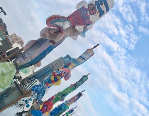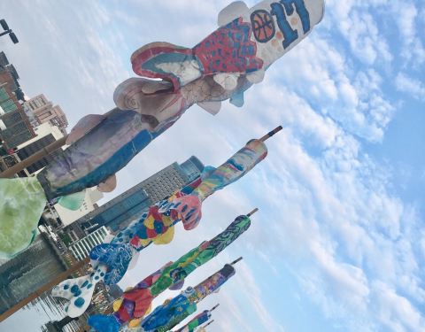 變成一個很棒的旅遊勝地,這裡也有很多不少裝置藝術,漁群雕塑,枕木步道,還有巨大的飛天掃帚,以及...