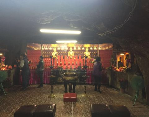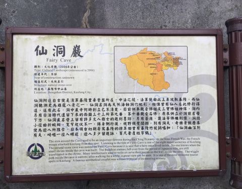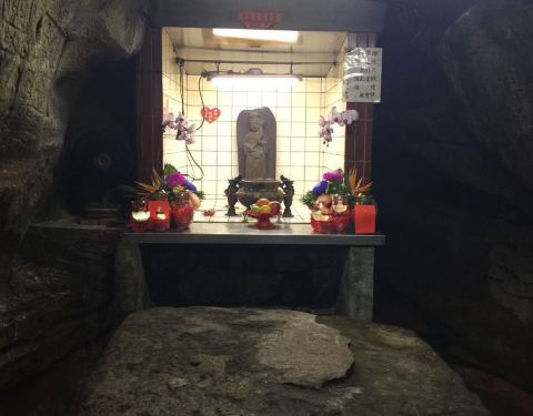 在基隆港附近,天然形成的岩洞,洞内宽敞些,供奉佛像,洞里还有一条很狭窄的分支,仅能容纳一人通过,中间还需要蹲下通行。