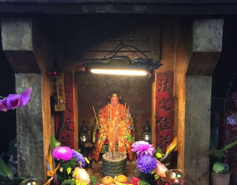 山腰处挖了一个洞,里面居然还有佛龛,想象力够丰富。