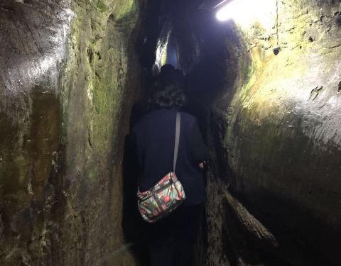 ...小岩窟,最窄處最驚險,須蹲身縮骨鑽過,通過時肩膀與兩側濕漉岩壁磨擦,而幽密窄縫, 令人心情膽顫