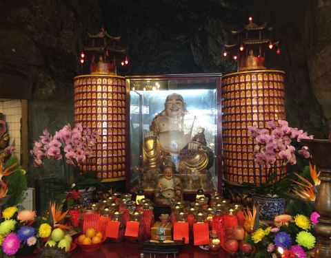 天然形成的岩洞,洞内宽敞些,供奉佛像,洞里还有一条很狭窄的分支,仅能容纳一人通过,中间还需要蹲下通行