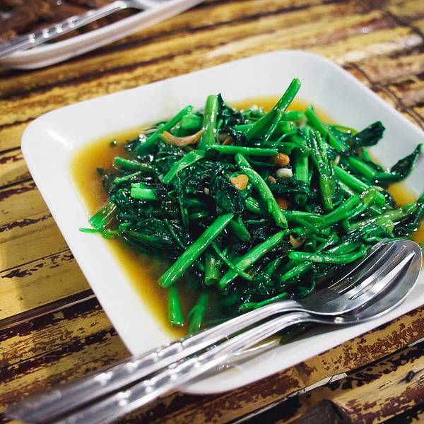 设计的就像一首小船,要走楼梯上去,空心菜很粗,不过吃起来还是嫩的,里面的面条是主打,味道不错,就是碗太小了,只能当点心吃。