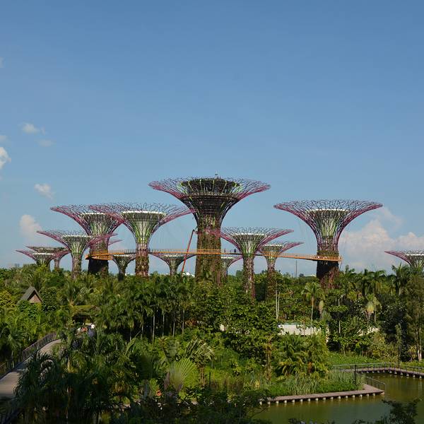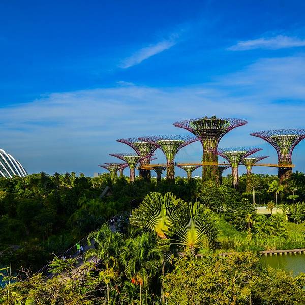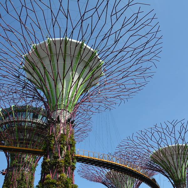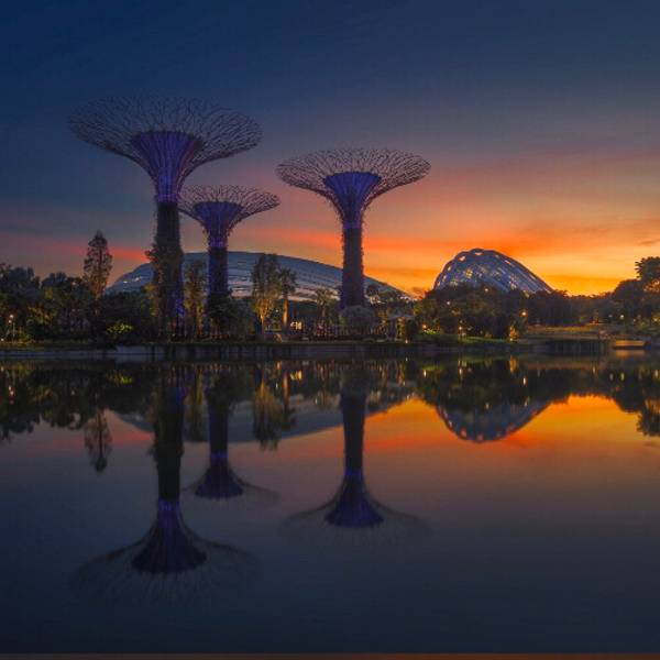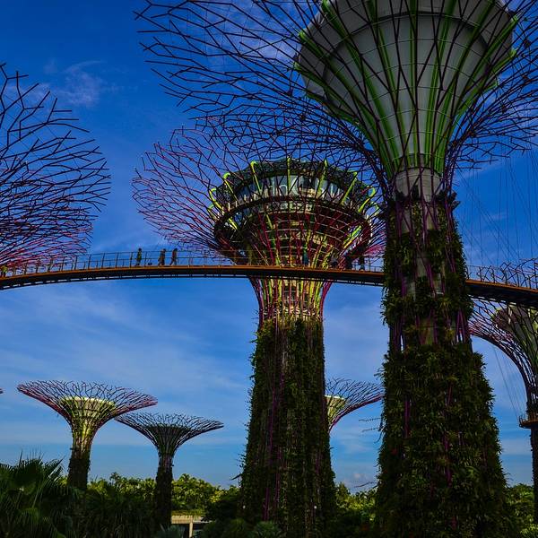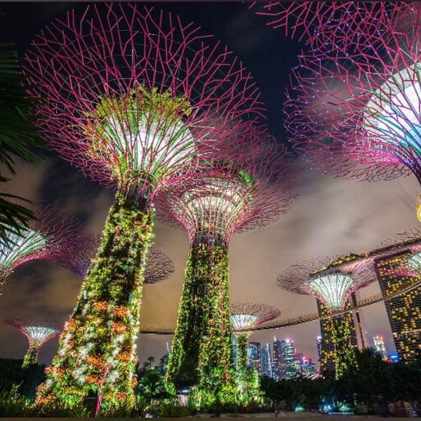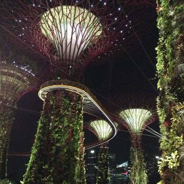 💚园中有18颗巨大的擎天大树(Supertree) 。这些大树其实是一座座16层楼高的垂直花园,可以登到树🌴顶鸟瞰整个花园景色。