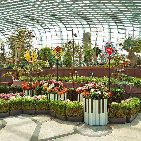 小马宝莉:友情的花瓣My Little Pony:Petals of Friendship踏入一个色彩与魔法的世界!孩之宝旗下知名品牌"小马宝莉"(My Little Pony)即将于滨海湾花园"花穹"打造《友情的花瓣Petals of Friendship》主题展;适逢即将到来的马年,四位备受喜爱的小马角色——云宝、碧琪、柔柔与紫悦——将换上全新造型,其设计灵感均源自中华文化的传统色彩、花卉与经典意象。她们将在与其个性相得益彰的繁茂花境中嬉戏玩耍:象征勇气与忠诚的云宝,置身于大胆鲜明的艳丽花丛中;而善良温柔的柔柔,则点缀在柔和淡雅的花卉与质感之间。展出时间:2025年12月11日-2026年4月12日 10.00am - 9.00pm展览位置:奇幻花园向日葵奇遇Sunflower Surprise在《向日葵奇遇》中,印度著名粉红之城斋浦尔的建筑辉煌与向日葵的蓬勃生机交相辉映。一片片向日葵花田静候着游客的到来,它们色彩纷呈,超越了常见的黄色,呈现出赤褐与棕褐等独特色调,其中不乏高达1.8米的巨型品种;而明艳夺目的万寿菊则共同构成了这片完整的繁花胜景。展出时间: 2025年10月22日-11月16日 9.00am – 9.00pm展览位置:花穹侏罗纪世界:体验今年5月29日,新加坡滨海湾花园云雾林将迎来一批“远古访客”——等比例还原的机械恐龙,将在这片氤氲缭绕的绿色秘境中“复活”!步入云雾林,游客将置身于一个真实还原的侏罗纪世界。8.5米高的腕龙雕塑巍然伫立,相当于三层楼的高度,将成为迎接游客的第一道震撼景观。展览精心设置了13个主题区域,包括与霸王龙的惊险相遇、与恐龙宝宝的亲密互动,以及在茂密植被中寻找小巧敏捷的美颌龙等精彩体验。在此次展览中,云雾林完美复刻了海拔1000至3500米热带山地特有的凉爽湿润气候。这里孕育着超过72,000株植物,其中50余种(如蕨类、苏铁和针叶树)的谱系可追溯至侏罗纪时期。这些植物曾与恐龙共生,甚至构成其食物来源。游客可以在这里直观了解这些“活化石”的演化历程,以及它们与恐龙共生的历史。展出时间: 2025年5月29日星期四起 9.00am – 9.00pm展览位置: 云雾林花穹 Flower Dome花穹(Flower Dome)在2015年被吉尼斯世界纪录列为“世界上第一大的玻璃冷室”。花穹内按照植物的不同产区划分,共分为9个区域,分别是猴面包树、肉质植物花园、澳大利亚花园、南非花园、南美花园、加州花园、地中海花园、橄榄林以及花圃。随着季节的变化,花穹内还会有不同的主题花展,盛放的各式鲜花,引得不少访客合影留念。开放时间:每天9.00am – 9.00pm(最后入场时间8.30pm)建议游玩时间:1小时云雾林 Cloud Forest步入云雾林(Cloud Forest),引入眼帘的便是高达35米的人造山和30米高的瀑布。山上种满了茂密的树木,满目绿意,让人神清气爽。访客可以乘坐电梯直达顶层,再通过空中步道 (云雾廊)缓缓走下来,俯瞰山下的“秘密花园”,自由地出入9个不同的区域,欣赏来自热带山地地区的各种植物,其中不乏珍稀草木花卉。开放时间:每天9.00am – 9.00pm(最后入场时间8.30pm)建议游玩时间:1.5小时水雾时间:10.00am, 12.00pm, 2.00pm, 4.00pm, 6.00pm, 8.00pm daily奇幻花园 Floral Fantasy坐落在海湾舫广场(Bayfront Plaza)的新景点奇幻花园共占地1500平方米,主要由四个风格各异的主题花园构成。花卉、艺术和科技在这里巧妙地融合,再加上独具特色的4D电影体验,将为你呈现一次非凡的奇幻赏花之旅。在这里,蜿蜒的空间串联起风格各异的花园景致,一步一景,无缝衔接。漫步途中,不妨驻足生态缸前,观赏缸内色彩绚丽的小型箭毒蛙,感受别样生机!开放时间:周一至周五10.00am – 7.00pm(最后入场时间6.30pm)周六至周日 10.00am – 8.00pm(最后入场时间7.30pm)建议游玩时间:1小时擎天树观景台 擎天树观景台擎天树观景台设立在新加坡滨海湾花园擎天树树冠上,360度的新加坡滨海湾花园风景一览无遗,城市景观和滨海湾景观尽收眼底。访客可以搭乘擎天树树干内的电梯,直达50米高的擎天树观景台。观景台共分为上下两层,除了上层的露天屋顶,访客也可在下层室内透过落地玻璃窗或户外走道欣赏风景。入夜之后,华丽的五彩灯光让擎天树更显得妖娆多姿。灯光秀每晚两度上演(19:45及20:45),美妙的音乐搭配绚丽多彩的灯光变幻,给人们带来一场难忘的视听盛宴。开放时间:每天9.00am – 9.00pm(最后入场时间8.30pm)建议游玩时间:45分钟