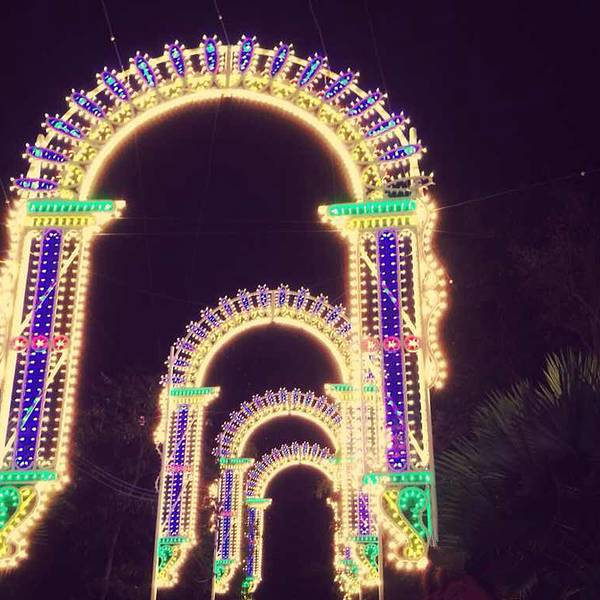 去年圣诞的时候这里还有人造降“雪”的一个东西,彩色灯光的墙在夜晚特别的美,就像科幻电影中的穿越之门一般 展开
