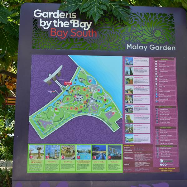 主要的风景位于南花园,南花园也是游客去的最多的一个地方,到这里可以乘坐地铁环线然后在海湾地铁站下车后步行约5分钟左右就能到了,交通很便利。南花园可以免费进入的,不过里面的植物冷室和OCBC 空中步道则需买票。植物冷室成人票28新币,OCBC 空中步道成人票价是5新币。喜欢植物的千万不要错过植物冷室,虽然把价格是不便宜,但是里面的职务真的值得你去看,不喜欢植物的人就不建议去,因为里面真的全是植物。另外里面真的很冷,空调温度很低,所以建议要去的人还是带一件外套御寒。南花园户外花园开放时间从每天早晨5点一直会开放到凌晨的2点,园区内有停车场,不过也只能在这个时间段里面停车。植物冷室和OCBC空中步道开放时间为每天早晨9点到晚上的9点。