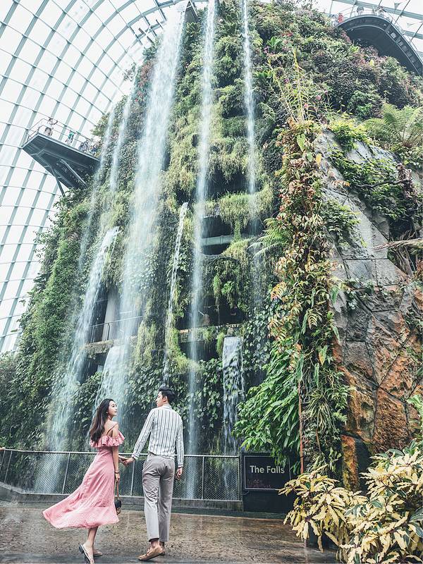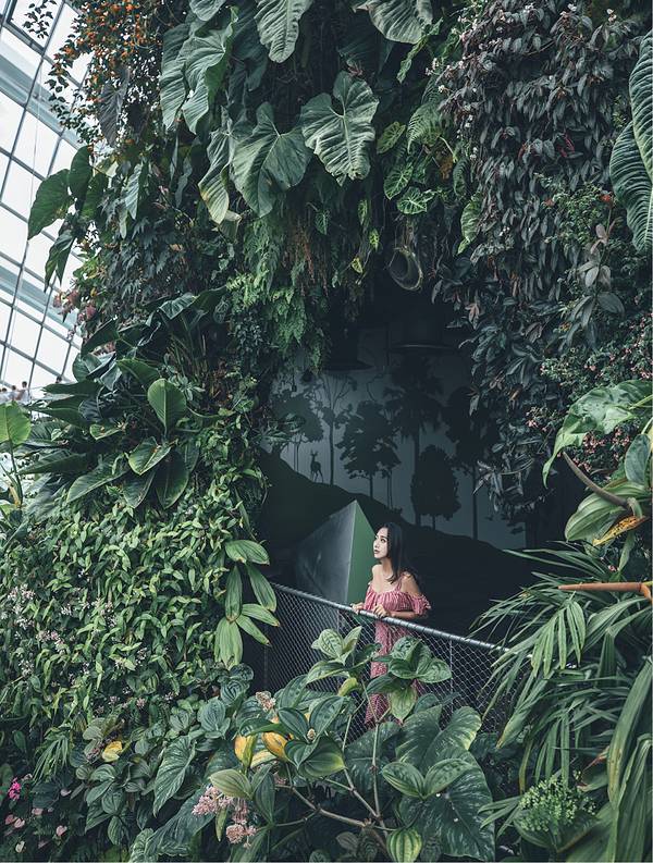 🍃云雾林 | Cloud Forest:巨型瀑布的所在之处,以绿色植物为主,洒落的阳光、瀑布的水雾,这氛围如爱丽丝梦游仙境一般,体验感棒棒。需要注意的是,由于人流过大所以馆内设置的是单向游览的。