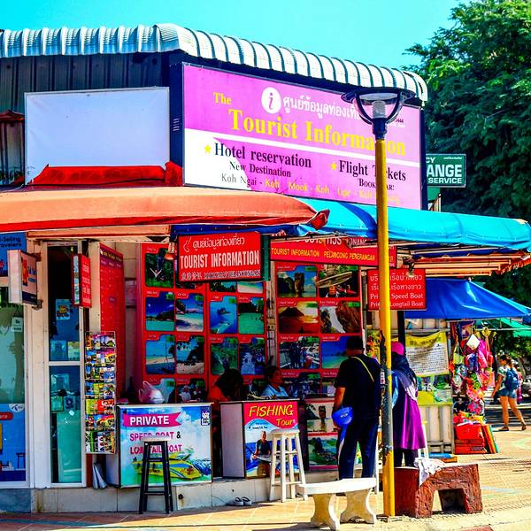 金骆驼 从甲米镇到奥南海滩的沿途风光秀美,山脉、森林、平原、丘陵相互夹杂的地貌成就了甲米特别的风景线奥南海滩(英文:Ao Nang Beach ;泰文:อ่าวนาง)距离甲米镇约20公里,是甲米最热闹也是最有名的海滩。一大清早,我从位于甲米镇上的Pack-up Hostel出发,花了40泰铢乘坐公交来到奥南海滩。在公交上遇见...奥南海滩(英文:Ao Nang Beach ;泰文:อ่าวนาง)距离甲米镇约20公里,是甲米最热闹也是最有名的海滩。一大清早,我从位于甲米镇上的Pack-up Hostel出发,花了40泰铢乘坐公交来到奥南海滩。在公交上遇见了一位来泰国度假的意大利空乘,俩人相聊甚欢,有一种《罗马假日》电影的代入感。从甲米镇到奥南海滩的沿途风光秀美,山脉、森林、平原、丘陵相互夹杂的地貌成就了甲米特别的风景线。车行不到20分钟就来到了奥南海滩。有点令人失望的是,沙滩并不像期望中的洁白,甚至有些发黑,不知道是生活污水排放所致、重金属污染,还是海里微生物的颜色。沙滩非常平缓,风平浪静,适合俩人沿着海滩漫步,但不适合冲浪、游泳、帆板等水上运动。奥南海滩开发得比较成熟,生活设施便利,出行方便,一部分甲米旅游的游客聚集在此,有点像普吉岛的芭东海滩。若从甲米机场过来,机场穿梭车150泰铢/人,约30分钟可到奥南海滩。奥南海滩沿线的旅行社服务窗口非常多,他们大多提供周边各个离岛的一日游、潜水、浮潜、长尾船租赁、船票等预定服务。奥南海滩也是甲米的海岸交通中心,旅游者可以从奥南海滩租船或买票游览附近的景点,例如莱利湾(Railay Bay)和兰塔岛(Lanta)。我买了一张前往莱利湾的长尾船船票(100泰铢),每艘船凑齐8名游客就可以出发。看得出来,每一名舵手/船长都是经过训练有素、经验丰富的,组织管理也做得不错,没有哄抢或相竞招揽游客的现象。长尾船是泰国南部岛屿之间水上交通的主要工具,也是一大旅游亮点。准备开船咯,享受海上风光。我乘长尾船到莱利湾后,中午返回甲米镇,等下午14:00的车接送到码头,坐船到皮皮岛。皮皮岛住一晚后,转天就坐船去普吉岛(Phuket Island)了。 展开