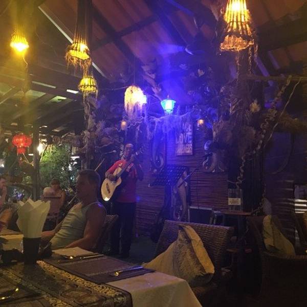 吃自助餐的,基本的虾、蟹、鱼、鸡、牛、羊都齐全,冬荫功那些都可以自己调配料让厨师煮,服务很好,环境一流,关键是人不多,不会像国内的自助餐那样抢得疯狂。两个人埋单连服务费才1300B,性价比高。有时间的朋友建议还是去吃一次吧,关键是环境可以给6星,味道也不错,基本的消费都在人均500B左右。 展开