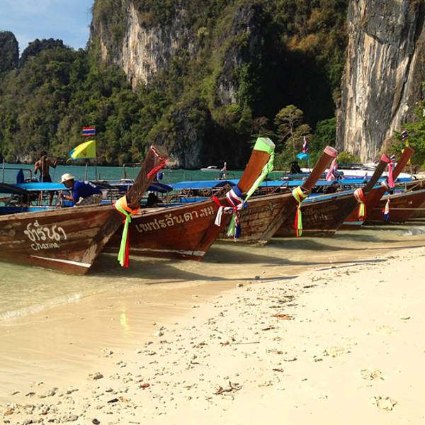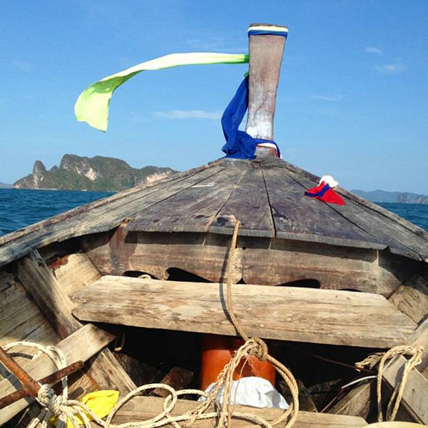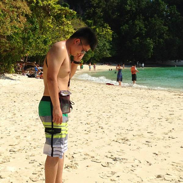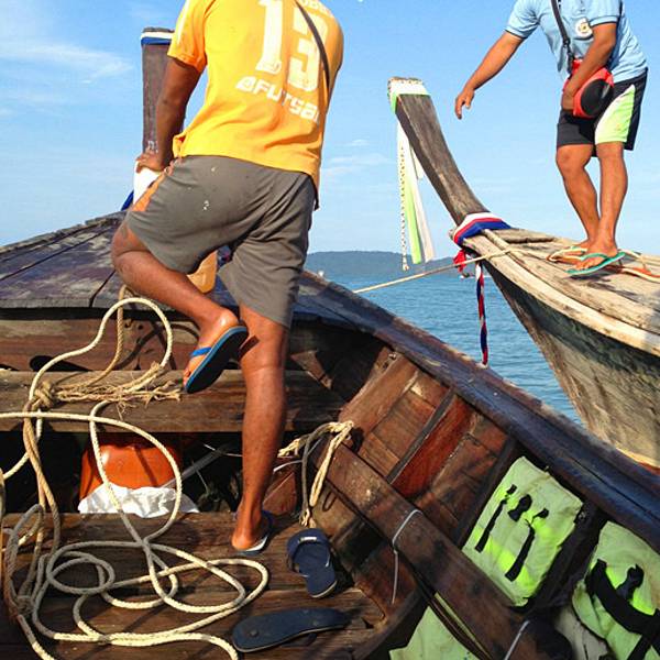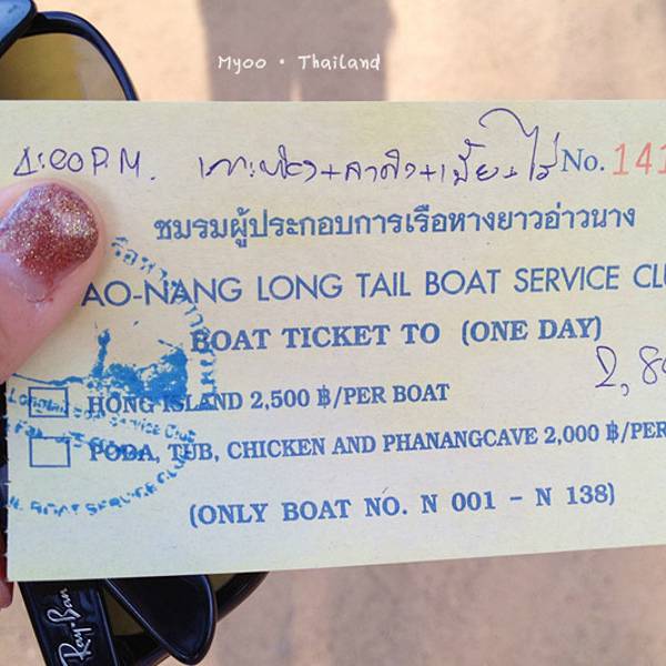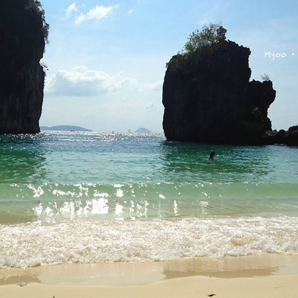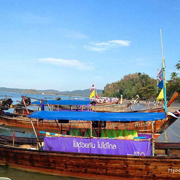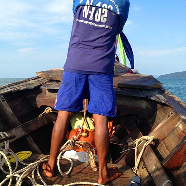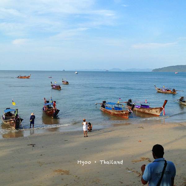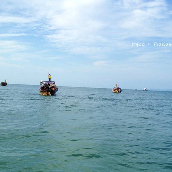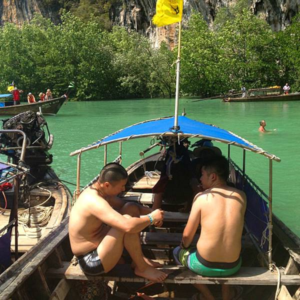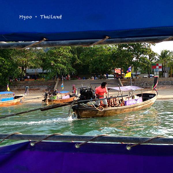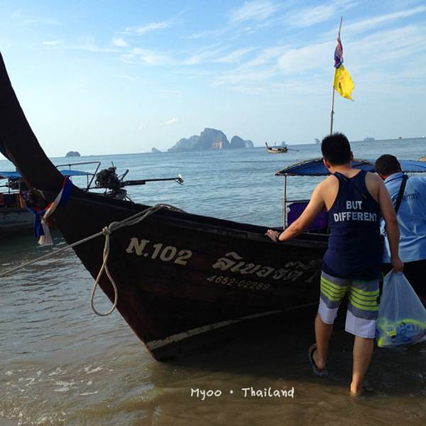 今天风浪着实不小,去程从上船到下船大概1个多小时,没成想后来因为风浪过大导致我们中午不得不提前返回奥南,以至于回程的时间变成了2个小时左右。我们在回程时,风浪超大,就像是迎风破浪的感觉,行程过半时阴天还下了一阵雨,第一次在船上感受到颠簸和寒冷,全身被海水无限次数的拍打,身上的救生衣和浴巾全部浸湿,船座下面是拍打在我们身上的海水顺流而下,足以没过我们的脚面。又值正午烈日当头照,皮肤被海水浸湿后,又反复被阳光暴晒,最难受的莫过于眼睛,被海水一次次的“冲洗”,所戴的太阳镜完全不能遮挡,以至于我后悔怎么没把浮潜泳镜戴上,等到下船时发现眼镜框上一层细细的海盐,可想而知回来的过程那是相当的痛苦与疲惫不堪。。。。 友情提醒海水无情,坐船必须要穿救生衣,随身的行李一定要配备防水包或者防水袋。当地奥南两边的街市上也有商家卖防水包,见人使用过,但防水效果无从考证。还有,坐船切忌坐船头,斌仔就是回程时出于好玩心理,非要坐在船头感受一下,屡劝不听。以至于后来严重晒伤进医院,一定要杜绝这种脑残+无知的行为!!