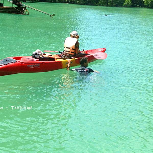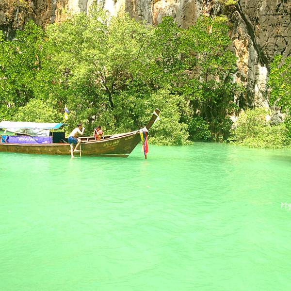 洪岛的泄湖位于甲米的内海,四周被绿色的山壁所包围,水面也呈现纯粹的绿色,感觉像是风景染上的一片绿。