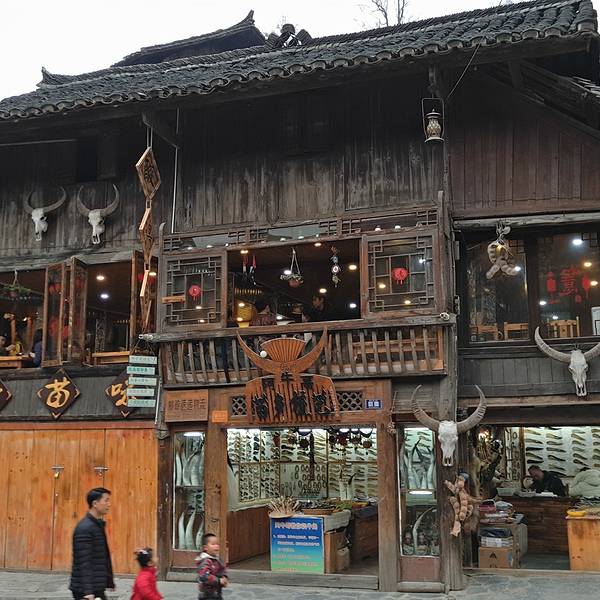 【景区概况】寨门口后期重建的痕迹非常明显,走进去的第一感觉商业化简直浓郁到了极致,周围全是商店和旅馆。不过就是商家比较聪明,门面装饰不是民族风就是清新文艺范,不过也大多千篇一律,看多了也就感觉进了个苗寨风格的购物广场。