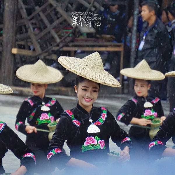 苗寨中间有一个演出场,每天会有2场演出可供观看,11点多开始演出,内容基本就是苗族特色的一些歌舞表演,中间开始下起雨来,演员们依然面不改色的继续演出,也是蛮敬业,赞一个。另外就是苗妹子,也不知道是不是本地的姑娘还是外面请来演出的姑娘,青春靓丽的不在少数,不过感觉并没有太多苗女的气质。