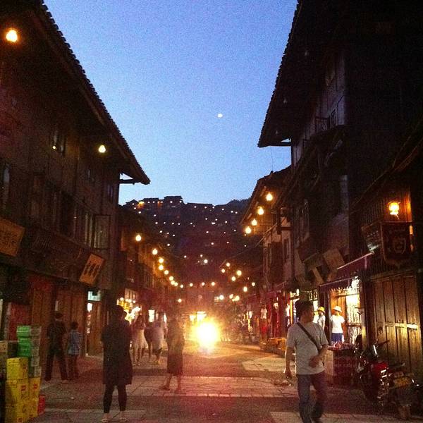 我是夜里10点坐摩托车悄悄溜进苗寨古街的,当时是冬季,街上冷冷清清的。