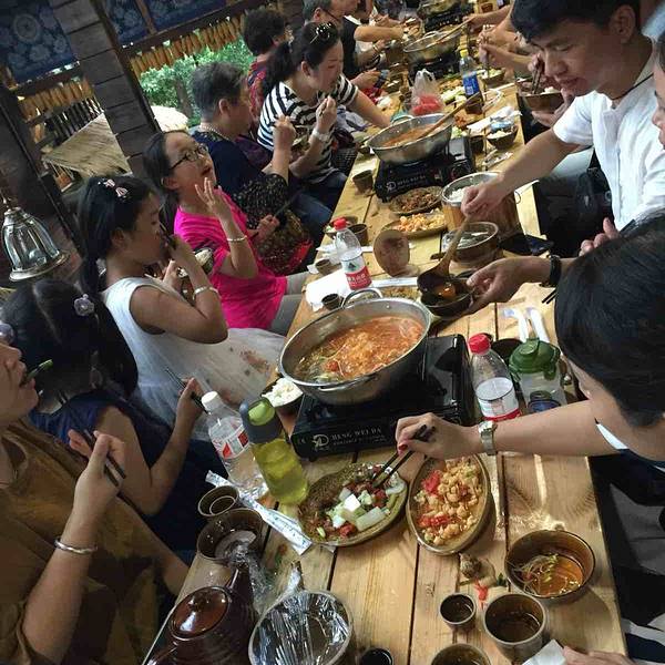 5、餐饮:这里的景点已经非常的成熟了,所以吃饭的地方特别多,小吃也很多,现打的糍粑是这里的特色。晚上要吃主食的时候可以在山脚逛逛,有一些人家还在吃那个很长的流水席,而其他的饭店、烧烤摊等沿河摆开,十分热闹。非常的繁华。